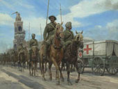 | A Long Way from Home A column of Indian Cavalry advance through the town of Albert, which was central to the Allied activities on the Somme in 1916. SOLD |